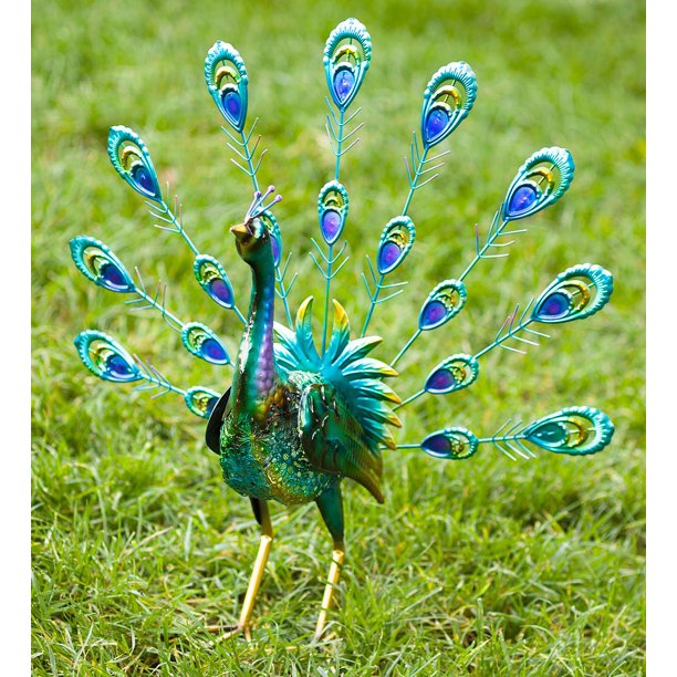 Realistic Magnificent Peacock With Beautiful Tail Feathers Outdoor Garden Stake Iron Easy Assembly Required For Patio Lawn Walmart Com